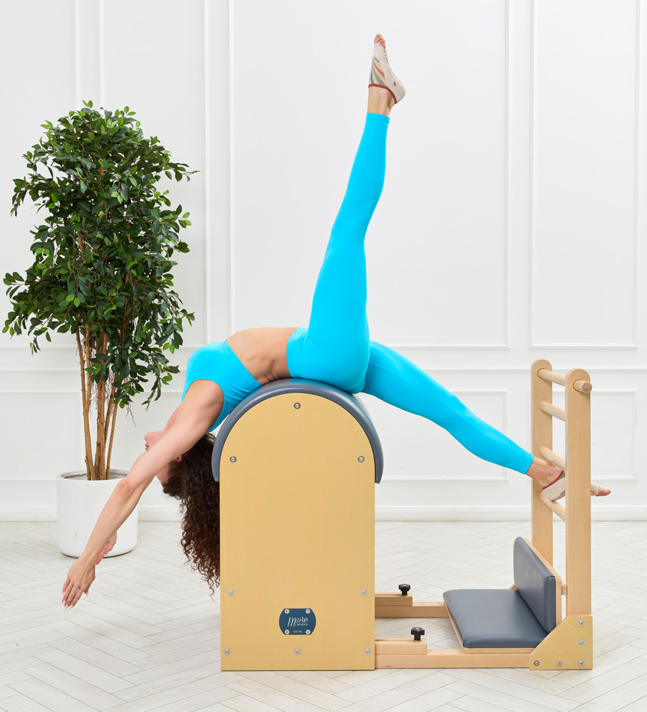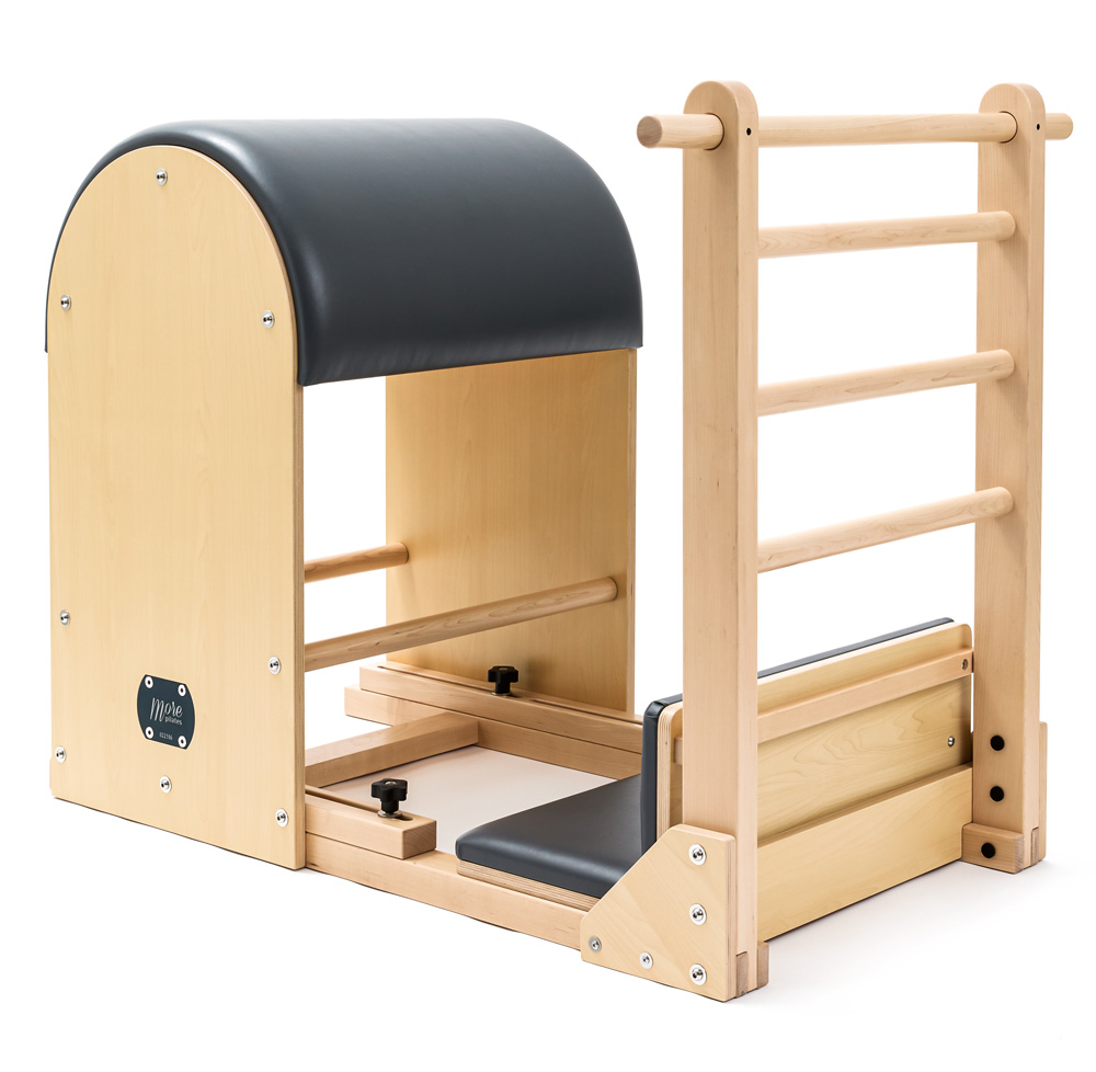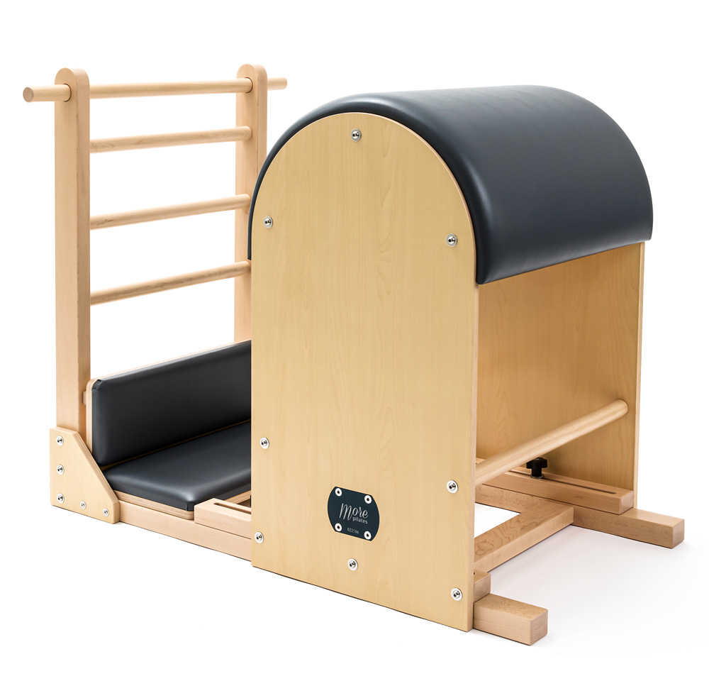 Бочка с лестницей More Pilates c упорами для ног — качественная устойчивая бочка с лестницей с мягкой обивкой. Она выдержит даже интенсивные занятия. Каркас изготовлен из клена. Нескользящая спортивная обивка и плотная набивка из качественного этиленвинилацетата EVA.